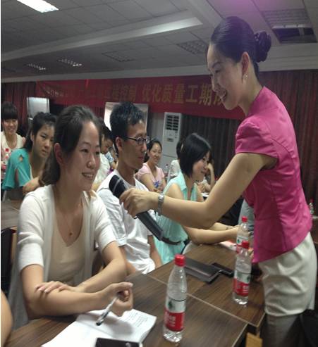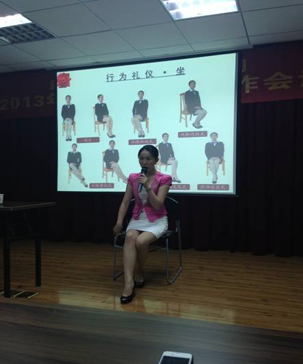 日常站立,入坐,行走,简单的事情要做得漂亮还真有讲究。高洁老师在台上结合ppt,为我们亲自示范。将不规范、不美观的一些举止形态与正确、优雅的行为举止分别做出演示对比。伴着笑声,台下的听者也感同身受,不住都坐直了腰杆。