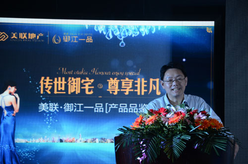 在此次的产品品鉴会中,项目开发商武汉美联地产有限公司总经理卞总首先简明扼要的阐述了美联地产的品牌理念、发展轨迹以及产业分布。作为实力雄厚的房地产开发企业,美联地产在武汉已有十余个经典项目,在业内皆广受赞誉。锐意践行十四载,以“创新美好生活”为责任,在引领美好人居的路上历久弥坚,经营范围涉及房地产开发、教育产业开发、酒店经营、科技产业等方面,卞总表示:“美联地产不仅要做一个品质地产,更要做一个责任地产,一个文化地产,美联·御江一品不仅要成为宜昌人们的人居首选,更要成为宜昌的城市文化新地标。