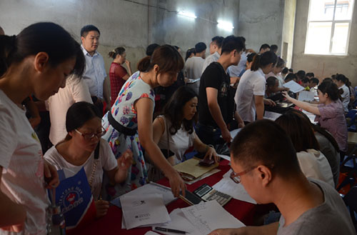 在交房现场,工作人员耐心细致的帮助业主解疑答惑