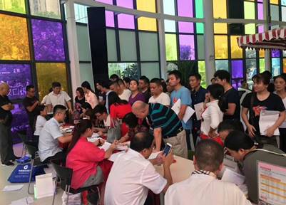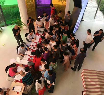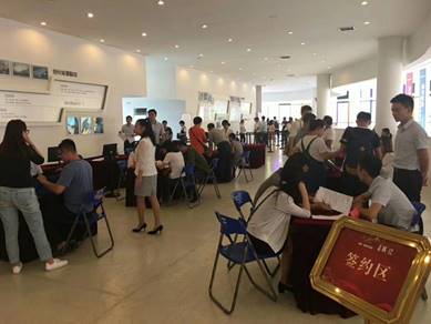 营销中心气氛火爆,签约客户们排起了长队,现场流程准备妥当,一步一岗安排工作人员和安保人员,保障客户签约流程有条不紊的进行。这次签约工作人员表现得尤其热情且专业,让很多客户都不禁对他们竖起了大拇指。