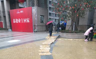 另外,为防道路湿滑,影响业主安全,工作人员除了在交房路线上全程铺设稻草外,还有保洁人员持续清冰除障、安保人员实时巡视,让业主回家的路走得更安心。贴心细致的安排也引得业主交口称赞。