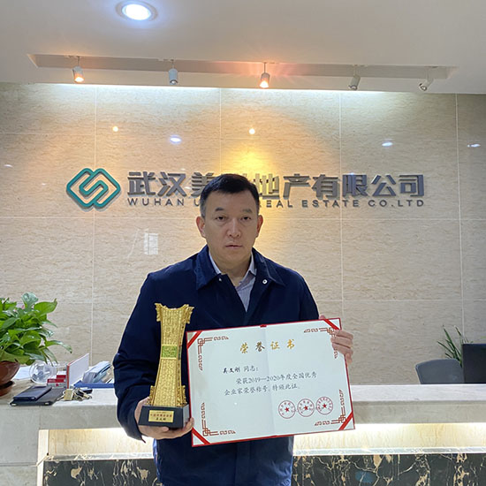 在“全国优秀企业家”评选活动中,武汉美联地产有限公司是唯一一个地产企业!省企联、省企协推荐材料中强调,在吴文刚同志带领下,武汉美联地产有限公司在不断追求各投资经营领域的专业贡献、创新和成长的同时,牢记初心,不忘使命,产业报国,积极回馈社会,服务民生,有责任、有担当。