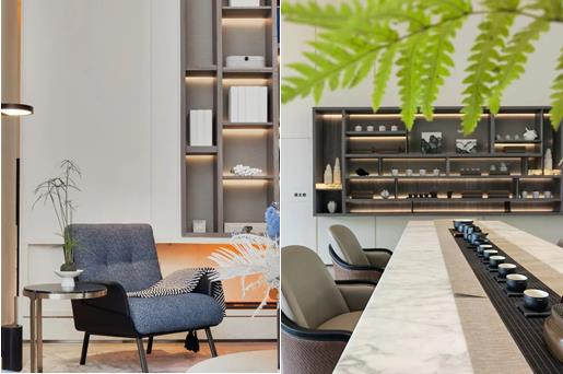 在2楼示范区,从艺术长廊的名画展厅,到会客休闲空间,一切的陈列与摆设,动线设计流畅而高雅,为来访者打造出塔尖高端社交场,也是美联五福路1号的圈层文化标志。