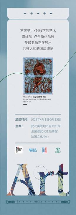 据悉,本场以“不可见:X射线下的艺术”为主题的艺术展,在法国驻武汉领事馆文化处、法国文化中心的支持下,由武汉美联地产主办,展览在位于汉口内环滨江核心地段的美联五福路1号项目展出。法国艺术家泽维尔·卢舍斯使用医用X射线重新创作了伟大艺术家们(毕加索、库尔贝、马奈、梵高)的伟大作品的X射线影像版,例如蒙娜丽莎、德拉克洛瓦和梵高的自画像等经典作品,在艺术与科学、可见与不可见之间,讲述一件件作品的起源,带领观众窥见经典作品背后的印记。