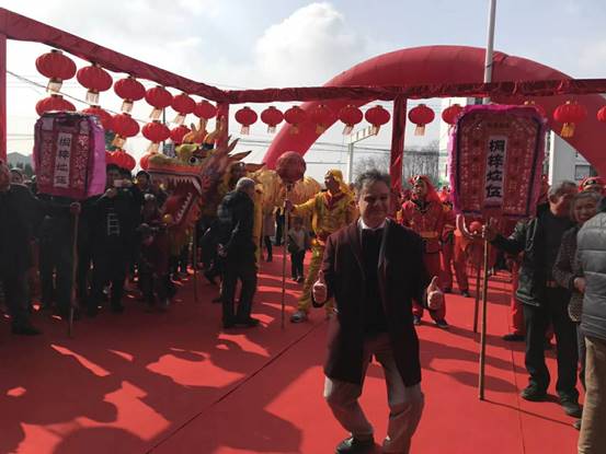 2月28日上午10点,美联·金古城营销中心门口可谓是热闹非凡,锣鼓喧天,舞狮舞龙队伴随着节奏,一展英姿,各类颇具金牛民俗的表演吸引了几千人围观。